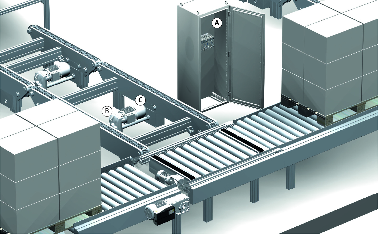 - Status monitoring of the drive and automation components installed