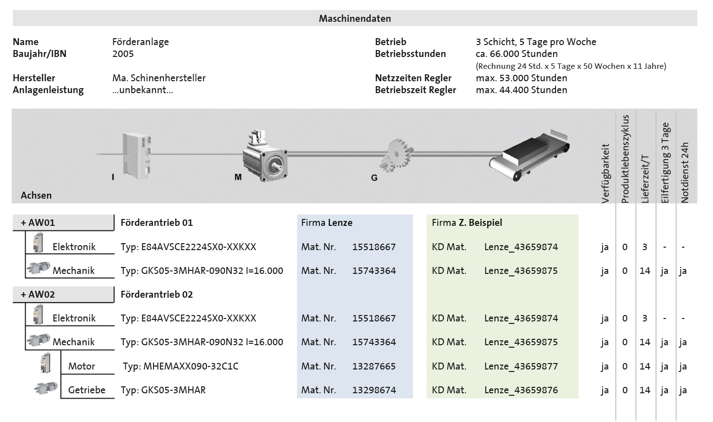 - Qualified stocktaking of all technical drive components by our Lenze qualified personnel